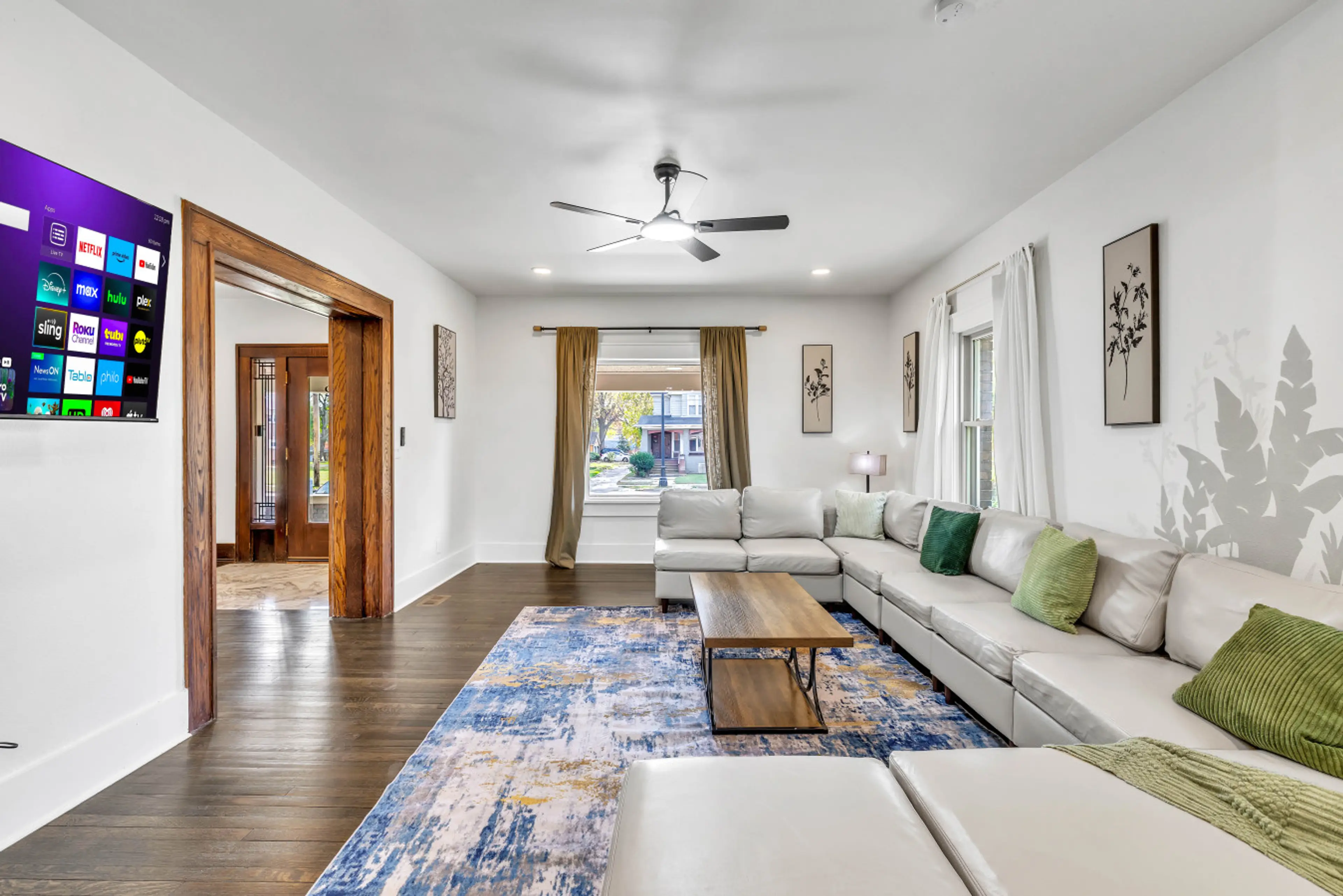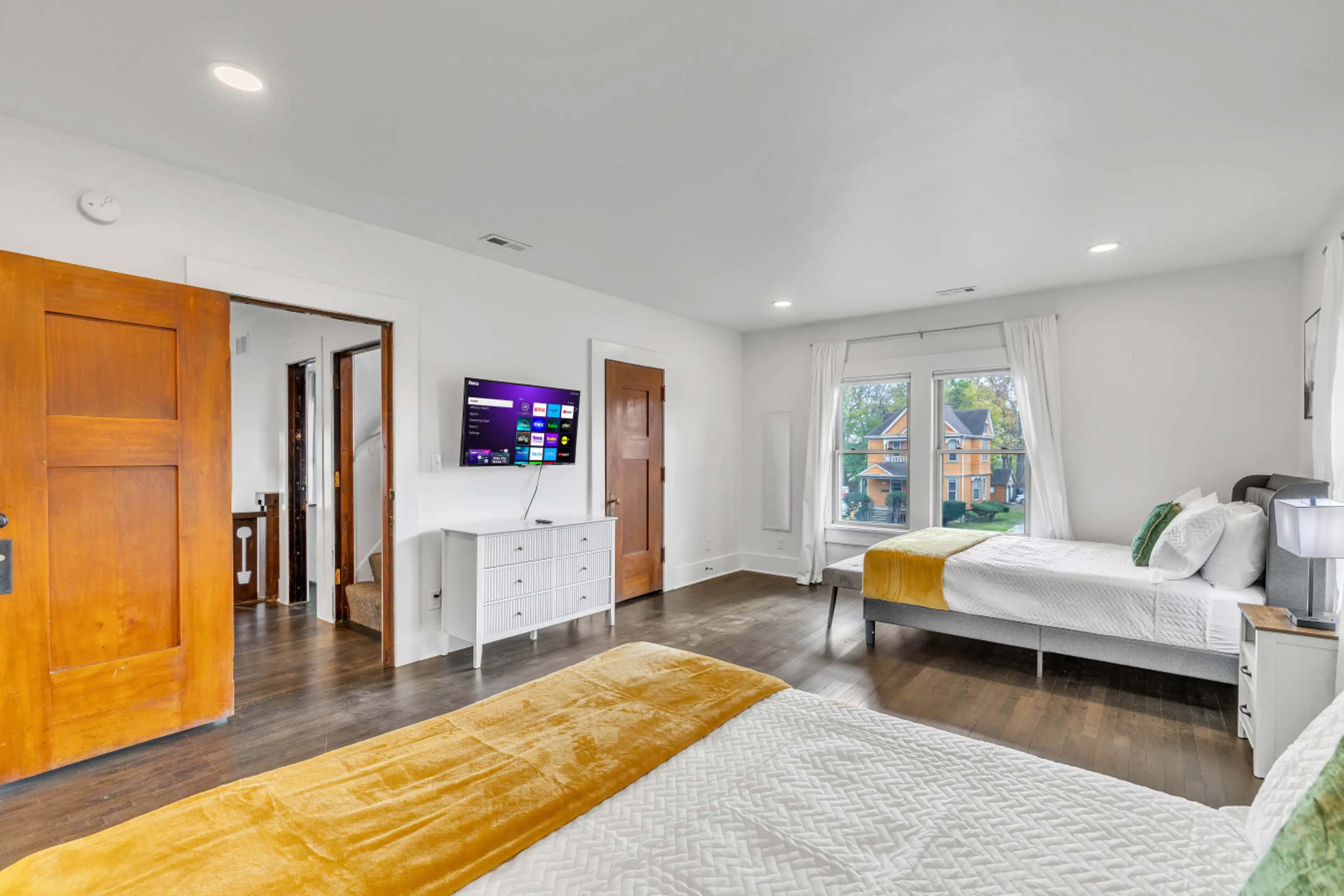 The whole group will be comfortable in this spacious and unique space. Spacious Family Retreat | Sleeps Large Groups Welcome to this elegant multi-level home where modern comfort meets timeless charm! Step into a grand marble-floored foyer, a spacious living room with a 58” Roku TV, and a dining r...